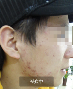 1、2014年11月20日第一次来院做治疗,两颊满是痘痘,太恐怖了!
