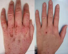 (湿疹患者在我院治疗前后对比图)