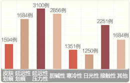据东莞莞南皮肤病专科2013年16617例荨麻疹初诊患者显示,其中有延迟性3100例,胆碱性2856例,接触性2251例,延迟性划痕1684例,皮肤划痕1594例,寒冷性1351例,日光性1250例,其他1684例。每