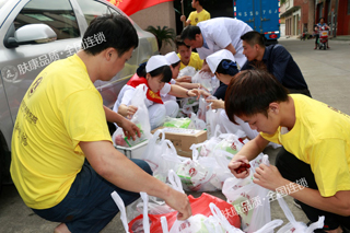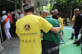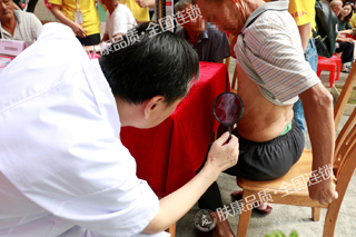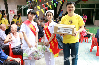 现场南城莞南皮肤门诊小分队的医务人员为老人义诊的工作台更是被围了个结结实实,护士冯晓玲和皮肤科医生柳汉友一边为老人量血压一边与亲切交谈,告诉他们平时保健方面的知识,有一位老人肋下皮肤出现大片红疹,柳医生耐心的给予处理意见;一位足部感染的老人也不同程度也认真听取了柳医生的意见;在健康服务后,莞南的白衣天使们又将打包好的苹果、牛奶、红枣、纸巾和皮肤保健用的风油精清凉油等慰问礼品分发给现场老人,老人竖起大拇指表示,像这样又送慰问品又解决他们实际问题的慰问活动真是:“好嘢!”