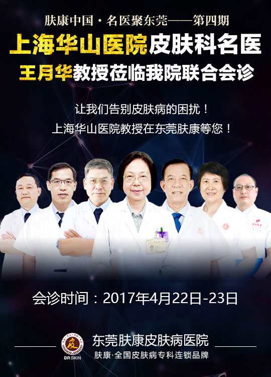为进一步贯彻国家医改政策,帮助部分疑难皮肤病患者解决看名医难问题,东莞莞南皮肤病专科特邀上海华山医院皮肤名医王月华教授于4月22-23日亲临东莞莞南皮肤病专科联合会诊。